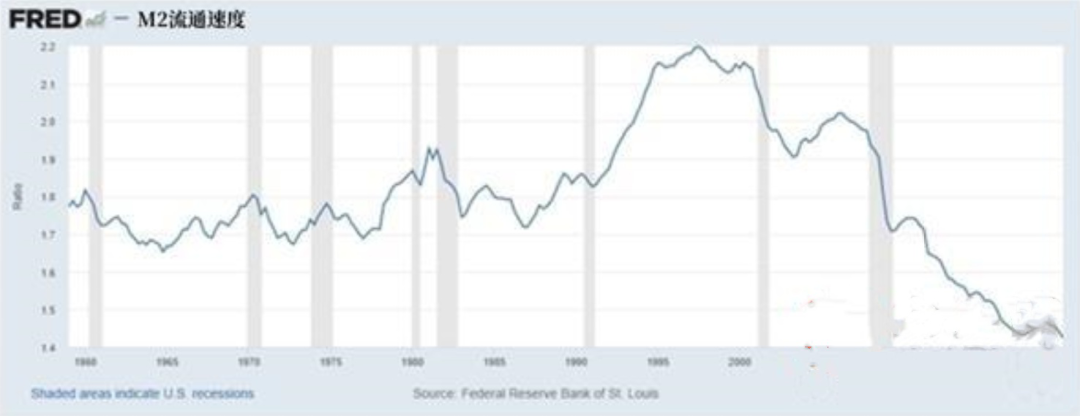 在某种意义上,这些货币就相当于不存在了。而这些不存在的货币占着货币总量的份额,拉低了整体流通速度。
